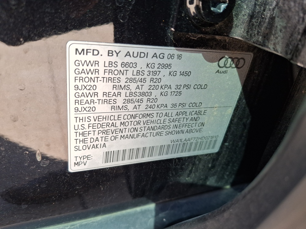 VIN number WA1LAAF72HD021810